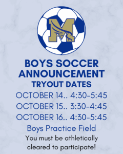 New and Returning must try out. Be properly equipped with cleats, shin guards & socks. Completed required FHSAA registration through Athletic Clearance.